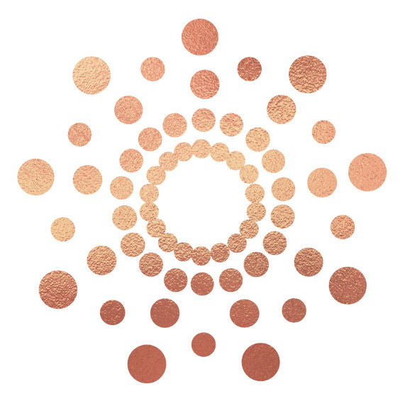 Ein Set aus drei verschiedenfarbigen temporären Tattoos: Gold, Silber und Kupfer.