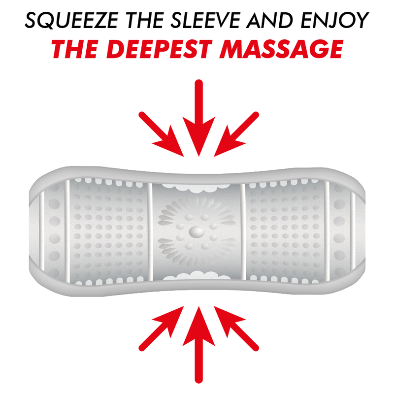 - Für noch mehr Empfindungen drücken Sie die Masturbationshülle zusammen